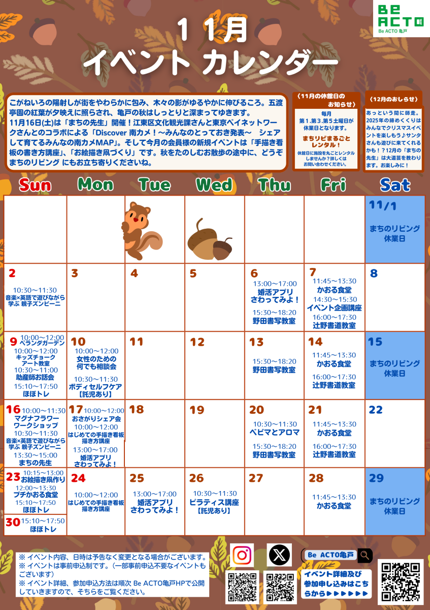 イベントカレンダーをチェックして、気になるものがあればぜひご参加ください🍁
