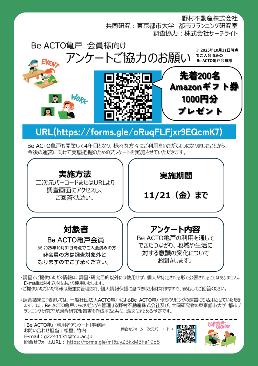 - 【11月21日(金)まで】Amazonギフト券もらえる! Be ACTO亀戸 会員様向け アンケートご協力のお願い