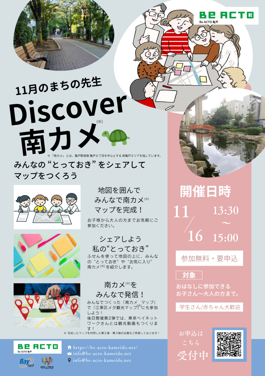 11月のまちの先生 第1弾は「 Discover 南カメ🐢 みんなの”とっておき” をシェアしてマップをつくろう」です!