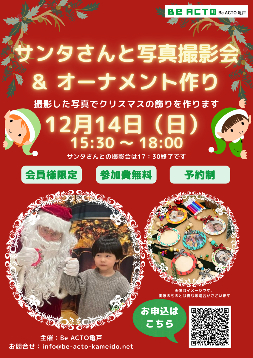 🕒 15:30〜18:00 ※サンタさんとの撮影は17:30まで