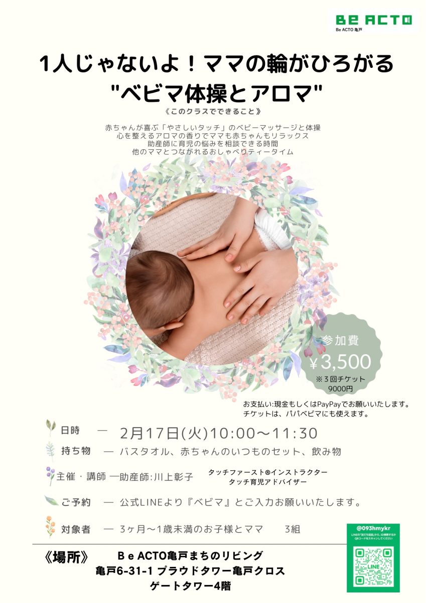 2月17日 1人じゃないよ!ママの輪がひろがる“ベビマ体操とアロマ”