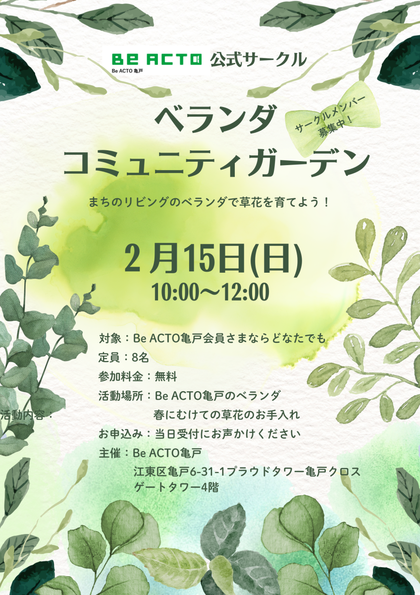 ■対象  Be ACTO亀戸会員さまならどなたでも