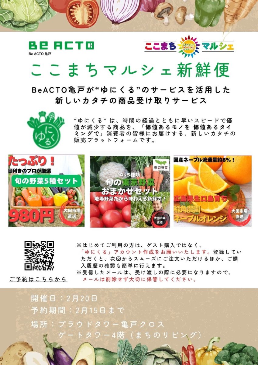 受取りは2月20日(金)10:00~15:00 Be ACTO亀戸まちのリビングにて