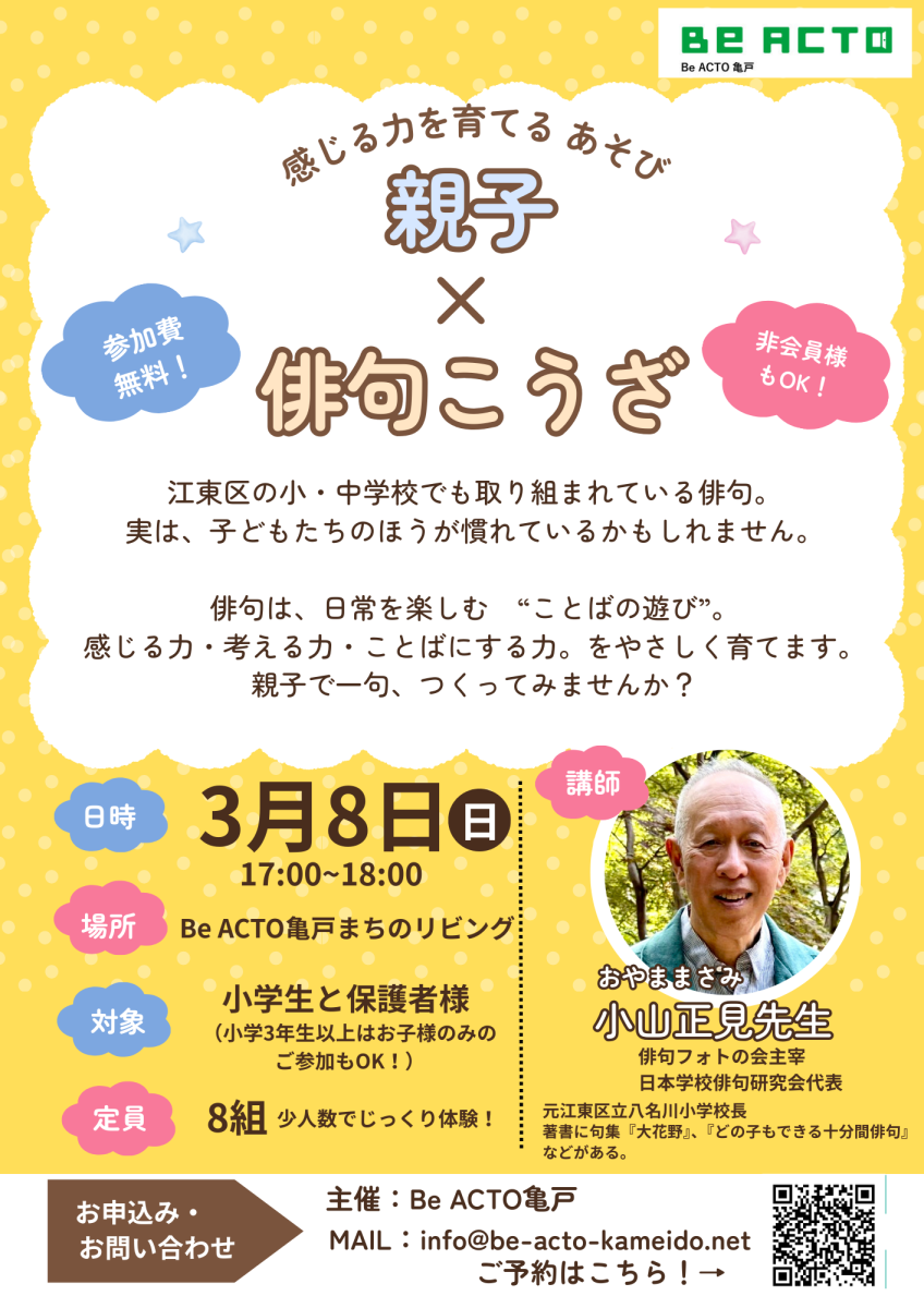 - 参加費無料! 親子x俳句こうざ 3月8日(日) 17:00~18:00