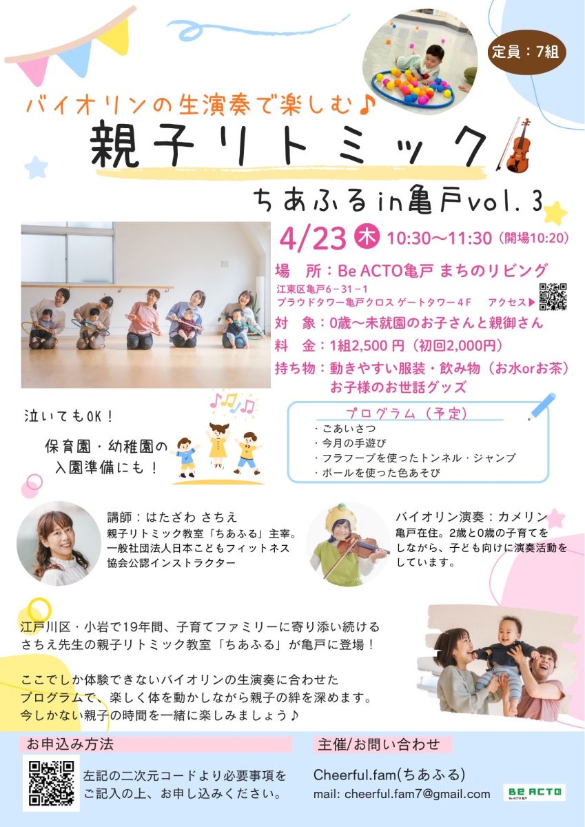亀戸在住。2歳と0歳の子育てをしながら、子ども向けに演奏活動をしています。